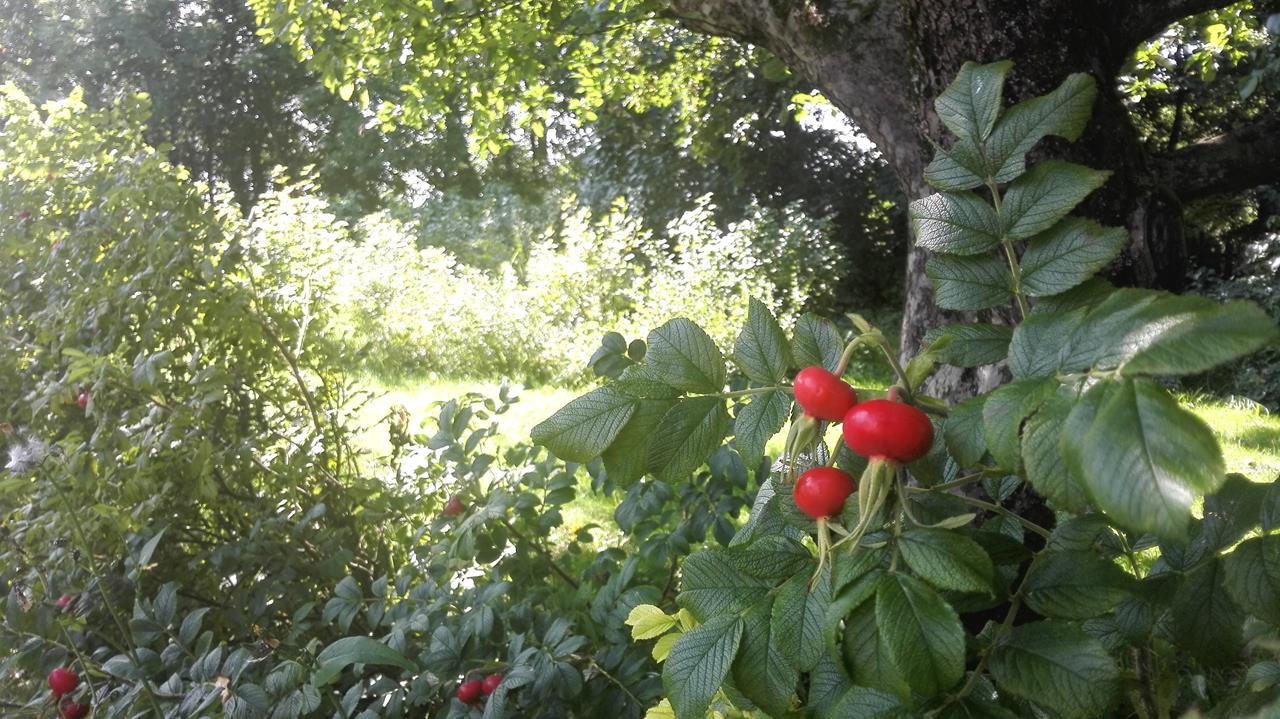 Hinter uns reifen bereits die Hagebutten heran