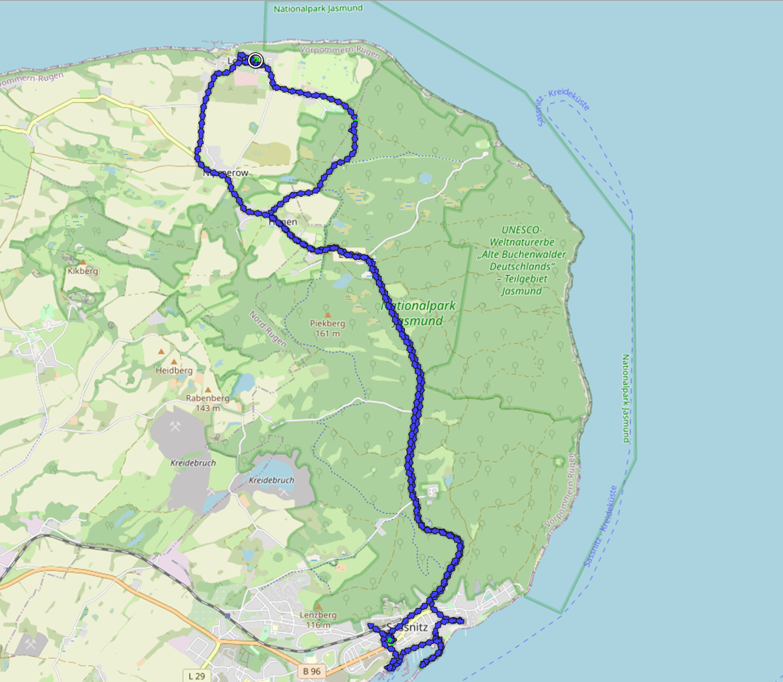 Durch den Wald und über teils stark mit Brennnesseln bewachsene Feldrandpfade schlagen wir uns zurück Richtung Lohme durch. Als wir wieder am Wohnmobil ankommen, zeigt das Wander-Navi eine Strecke von 15 Km und 400 Höhenmeter an. Man möchte kaum glauben, dass es auf einer „flachen“ Insel doch so sehr rauf und runter geht. Aber jetzt habe ich sie endlich mal gesehen, die berühmten Kreidefelsen von Rügen.