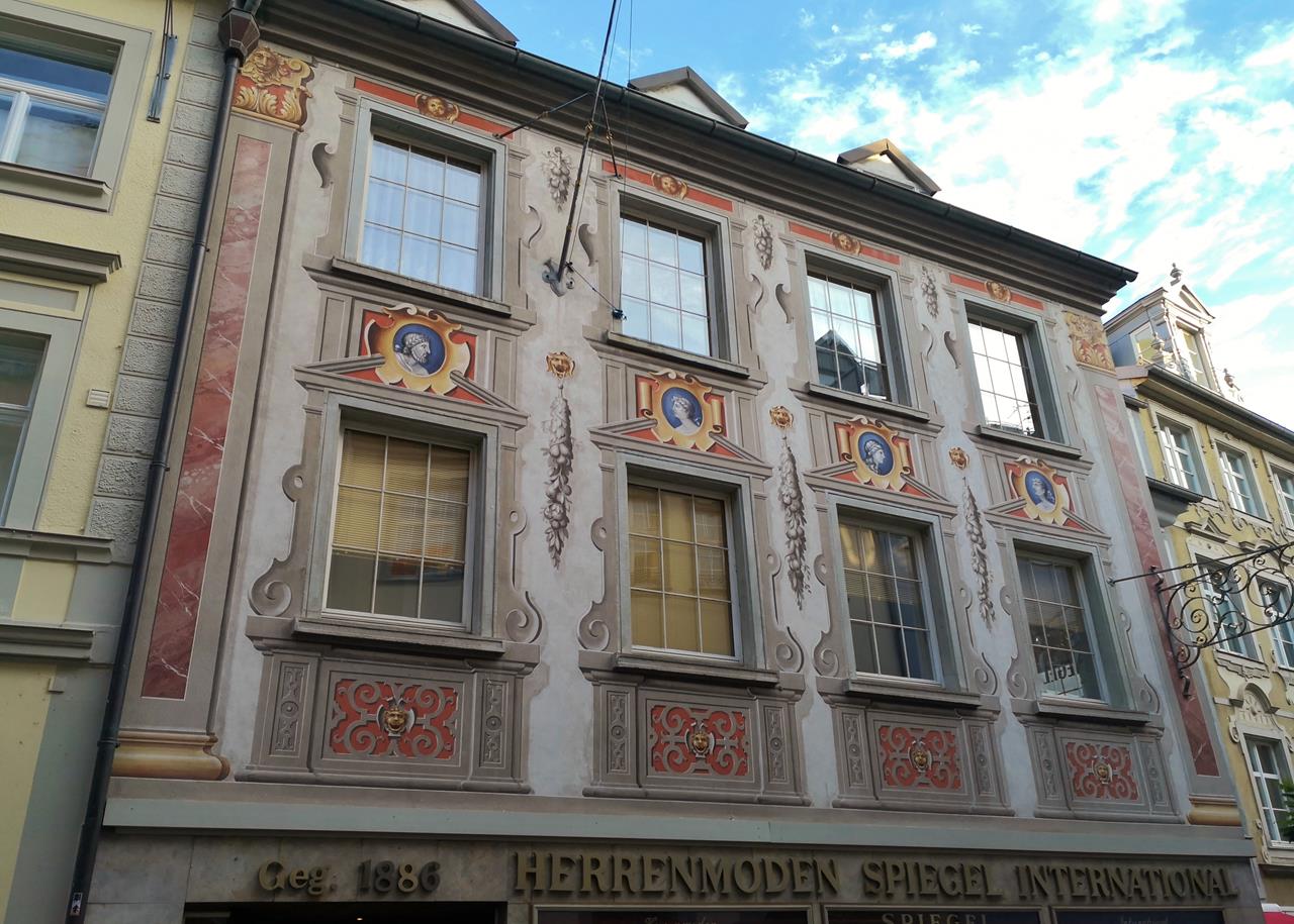Viele historische Bauten in der Altstadt sind mit der für den Allgäu typischen Lüftlmalerei verziert. Besonders markant ist dies u. a. am Alten Rathaus auf der Maximilianstraße, der Hauptstraße der Inselstadt.