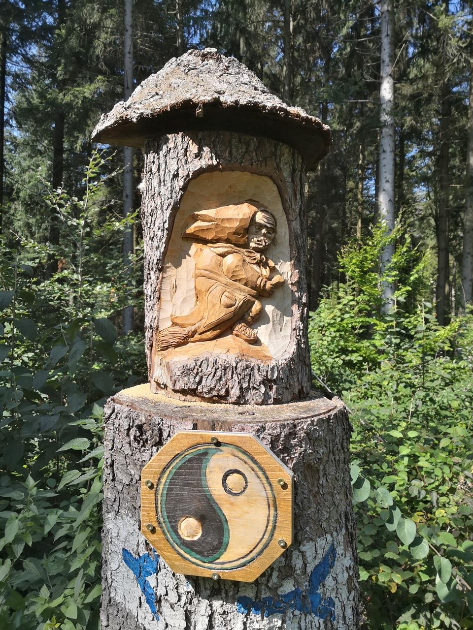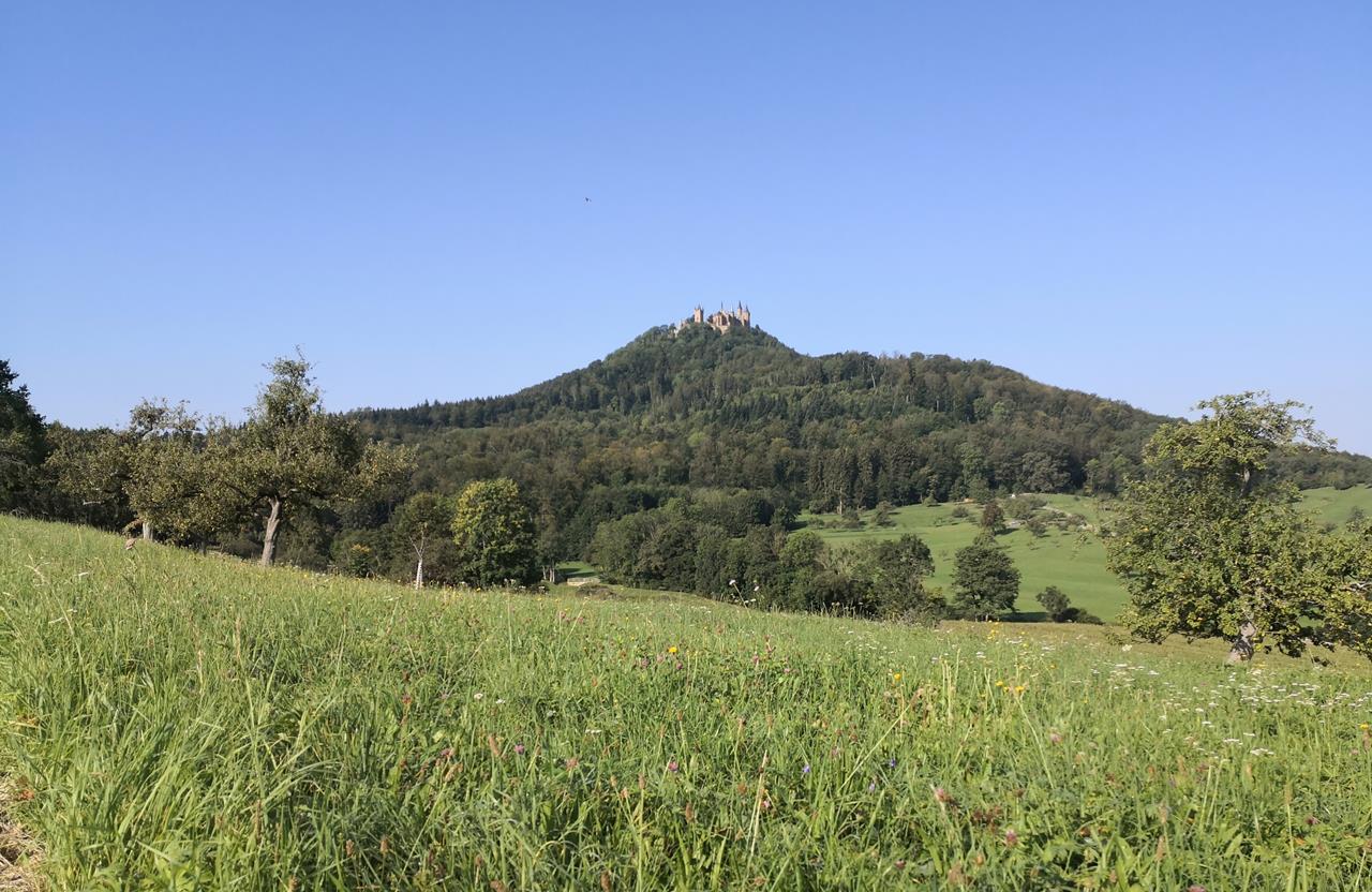 So laufen wir bis kurz vor den Ort Hausen im Tal am Fluss entlang. Dann beginnt unser Rückweg, der uns zunächst vom Fluss weg und durch dichten Wald hinauf auf den 200 Meter hohen Lenzenfelsen führt. Auf dem höchsten Punkt befinden sich unmittelbar über dem Flusstal die Reste der mittelalterlichen Lenzenburg. Von dort hat man einen fantastischen Blick hinunter ins Tal. Schon dafür hat sich der Aufstieg absolut gelohnt.