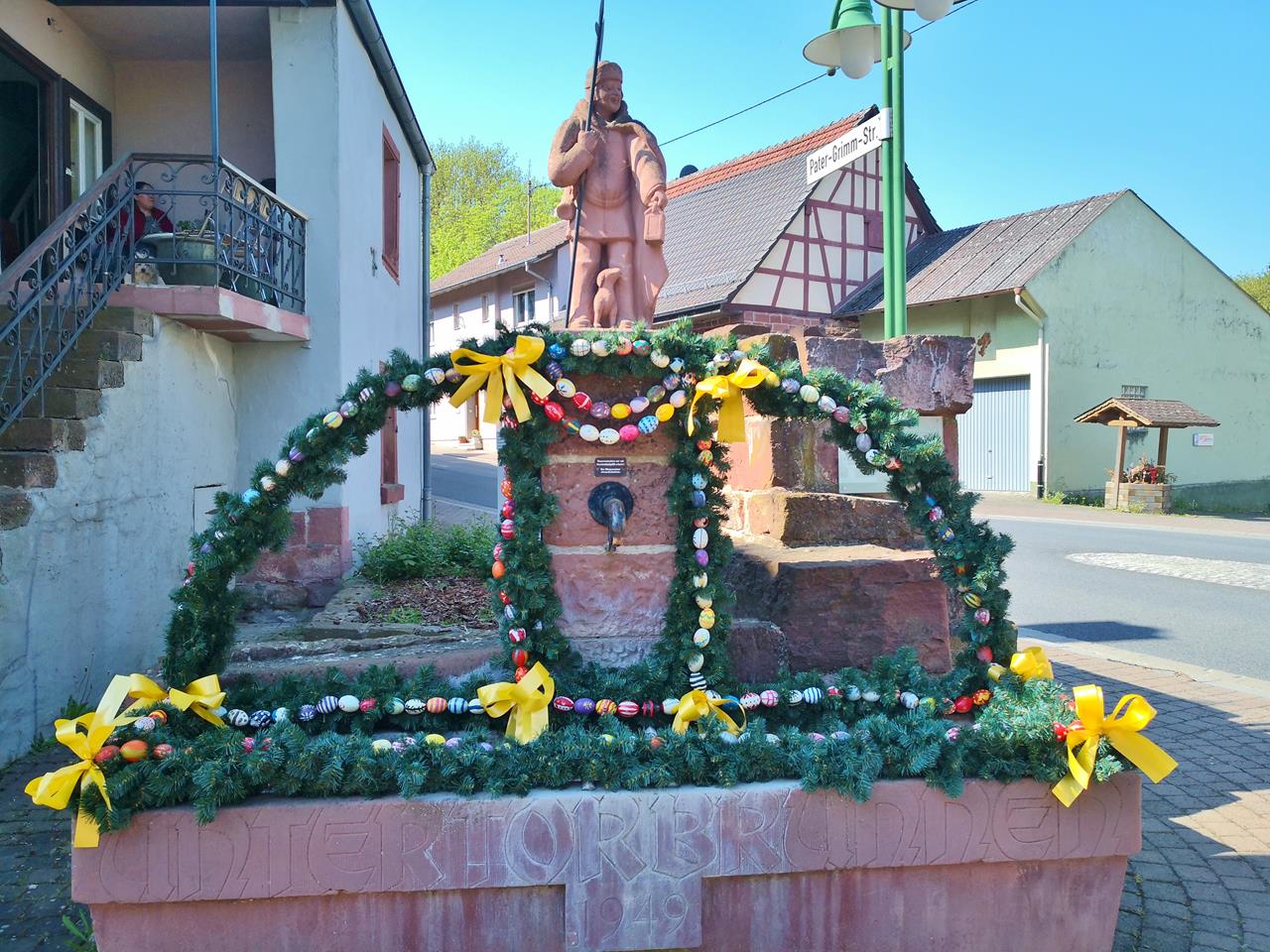 Brunnen am Schlossplatz mit Blick zur St. Martin-Kirche