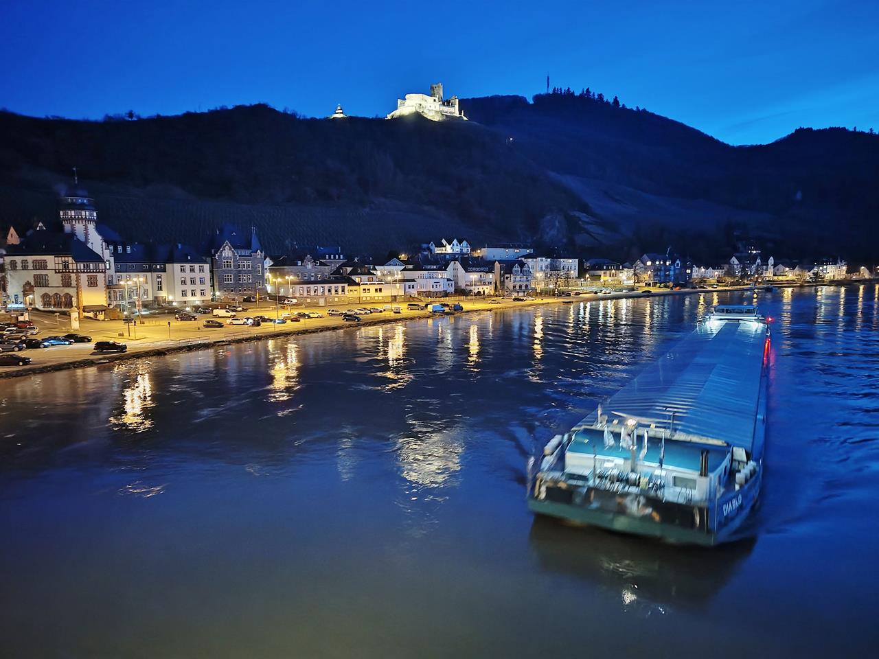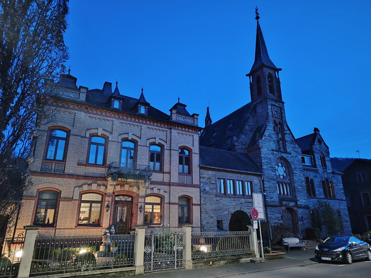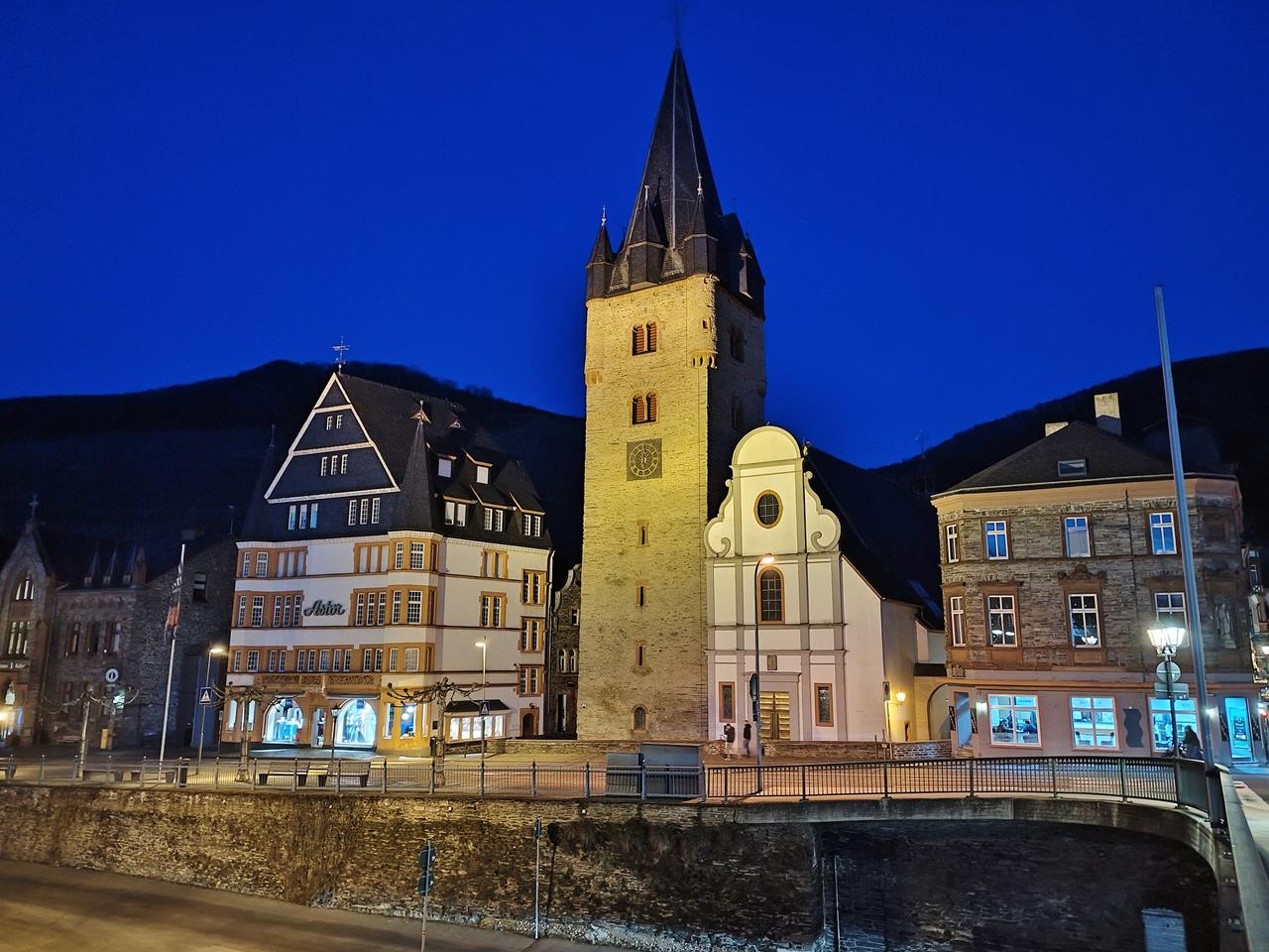 Am frühen Abend wandere ich in der aufziehenden Dunkelkeit von meinem Stellplatz auf dem Kuser-Plateau hinunter zur Mosel nach Bernkastel-Kues. Ich möchte einen kleinen Nachtspaziergang durch die Altstadt unternehmen.