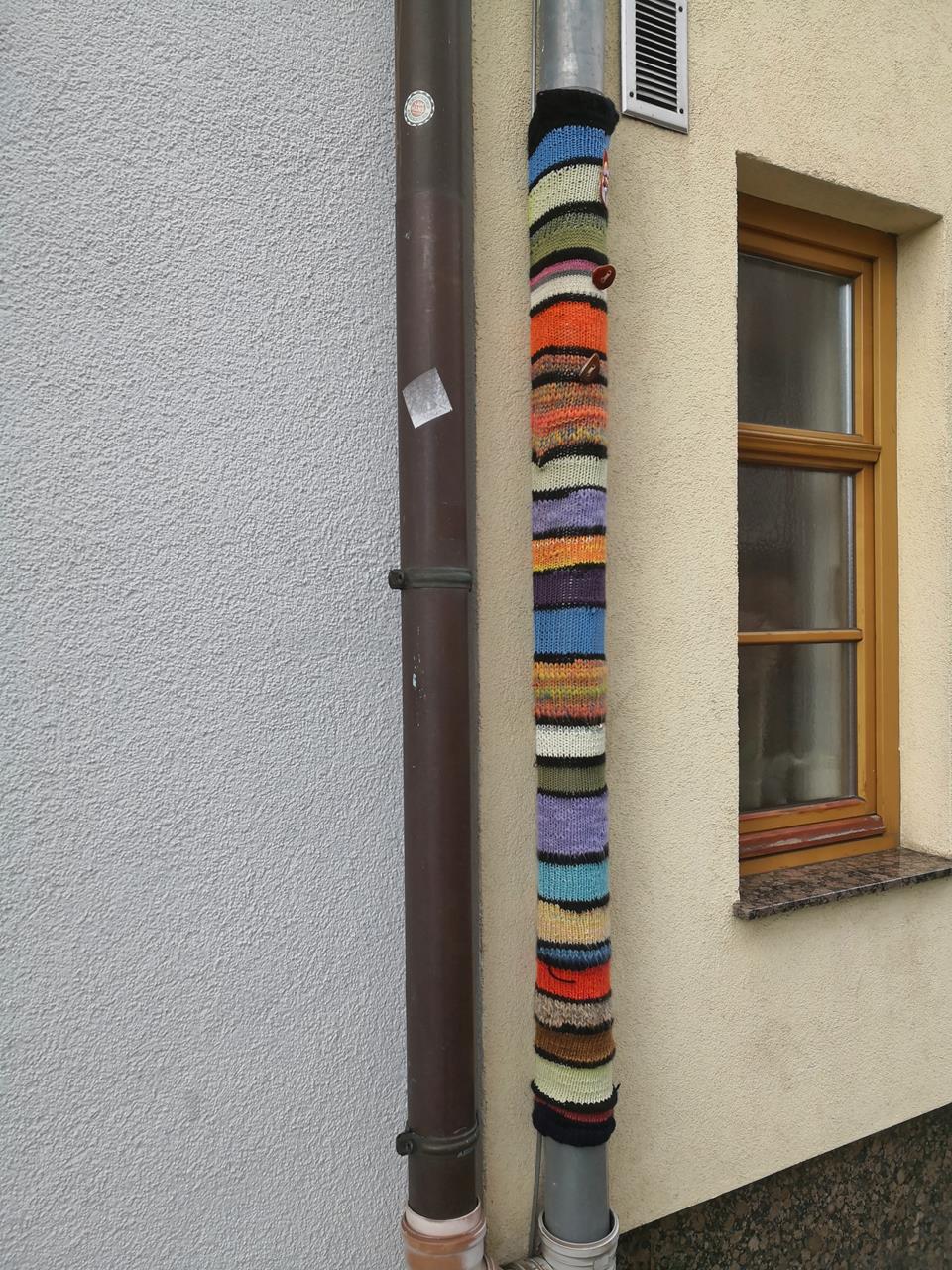 Tag 3Die Häkelguerilla ist überall – auch in Erfurt. Am Abend bin ich mit meiner Cousine in der Innenstadt unterwegs.