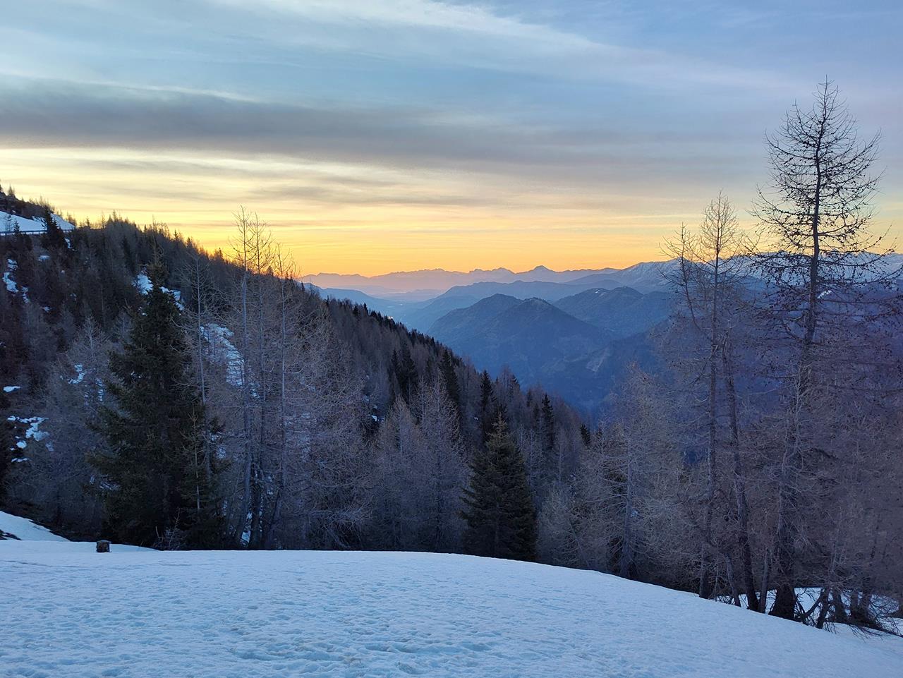 Sonnenaufgang auf dem Berg Goldeck über Spittal an der Drau
