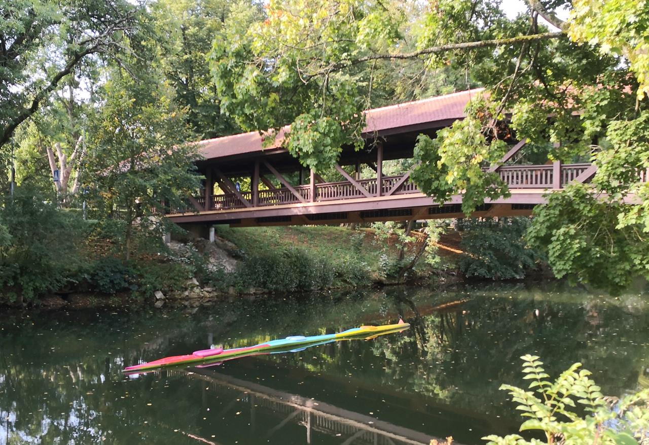 Nach einer ruhigen Nacht am Donaupark in Tuttlingen breche ich mit Doxi am Morgen zu einer 16 km langen Wanderung in die Wälder westlich von Tuttlingen auf. Wir laufen zunächst an der Donau entlang durch den schönen Donaupark und überqueren dann am Freibad die Mündung der Elta in die Donau.