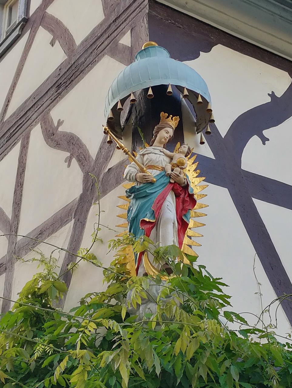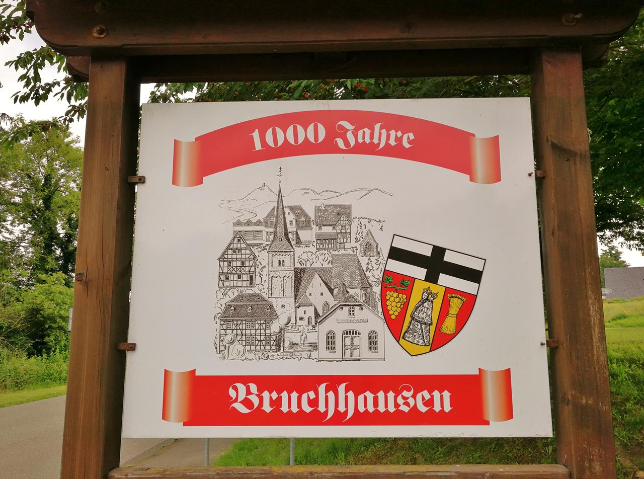 Dem Weg durch die Felder folgend, geht es vorbei am Wallfahrtsort Bruchhausen. Bevor wir ins Hähnerbachtal hinabsteigen, labe ich mich an einem großen Kirschbaum auf öffentlicher Fläche. Die Hälfte der Kirschen sind von Vögeln angefressen oder schon verfault, aber der Rest schmeckt einfach wunderbar. Eine köstliche Stärkung.