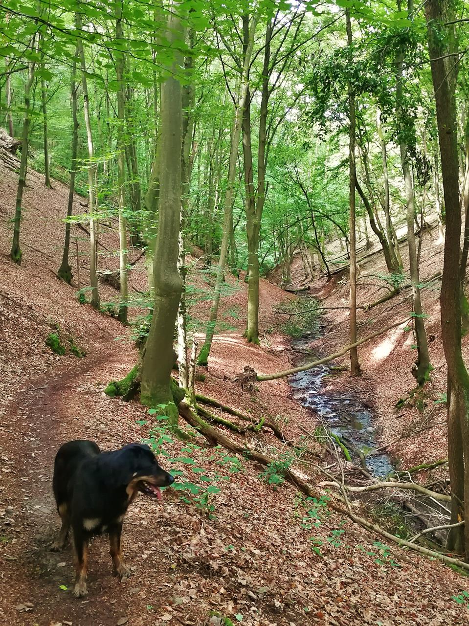 Doxi beim Abstieg entlang des Hähnerbachs durch die Unkeler Schweiz