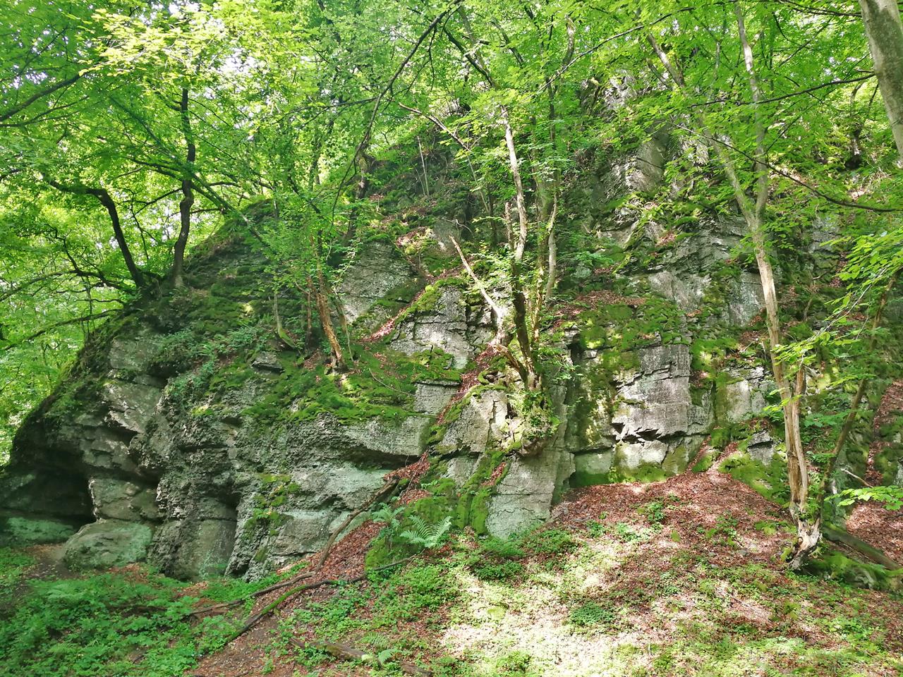 Nach einem langen Anstieg erreichen wir die Reste einer V1-Abschussrampe aus dem Zweiten Weltkrieg und kurz dahinter das „Auge Gottes“, einen Bildstock, der um 1890 errichtet wurde.