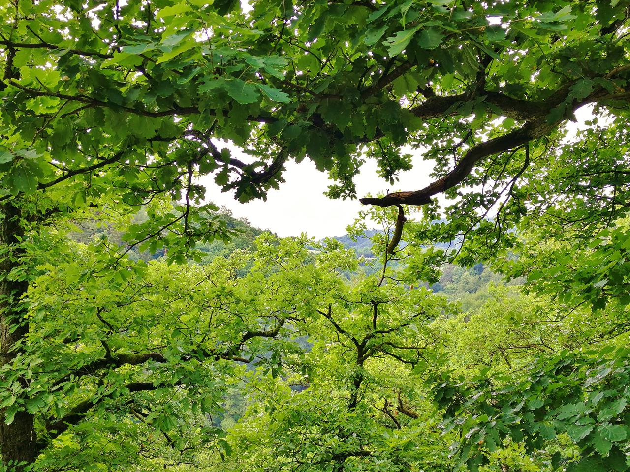 Gleich hinter dem Ortsausgang geht es steil den Leidenberg hoch bis zum Bruchhausener Plateau. Wir passieren den Haanhof und steigen dahinter durch alte Buchen- und Eichenbestände langsam nach Rheinbreitbach hinab.Ab jetzt geht es stetig bergauf, zunächst am stillgelegten Naturfreibad vorbei und dann zur alten Ziegelei. Der Wald wird dichter und urwüchsiger.
