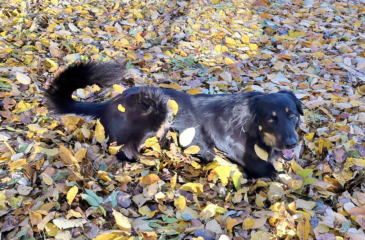 Doxi hat Spaß im Herbstlaub