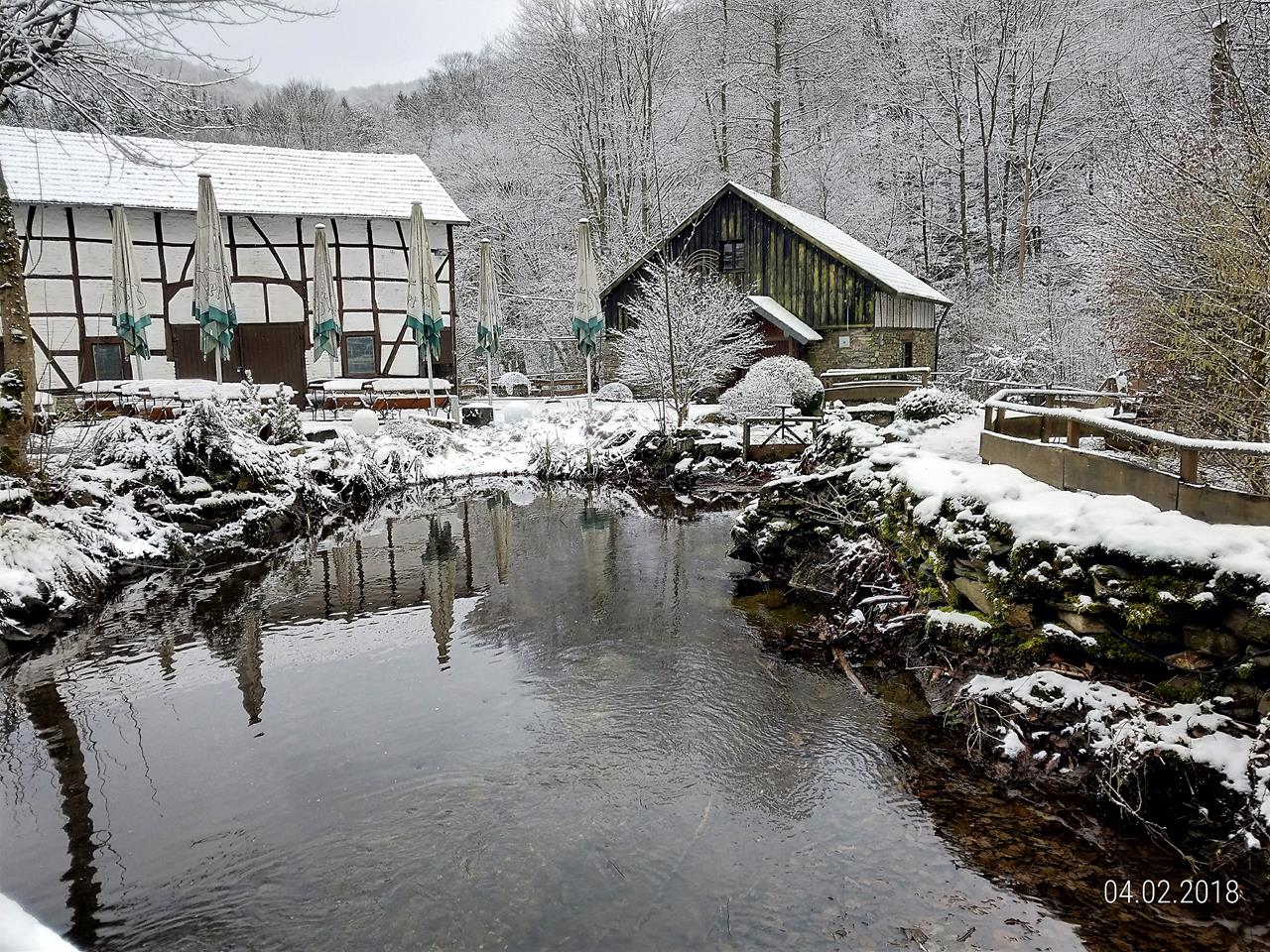 Weiter geht es im dritten Abschnitt entlang der Kall zur alten Mestrenger Mühle. Das Haupthaus in traumhafter Lage stammt aus dem Jahr 1633. Leider ist die beliebte Außengastronomie wegen der Corona-Pandemie derzeit geschlossen.