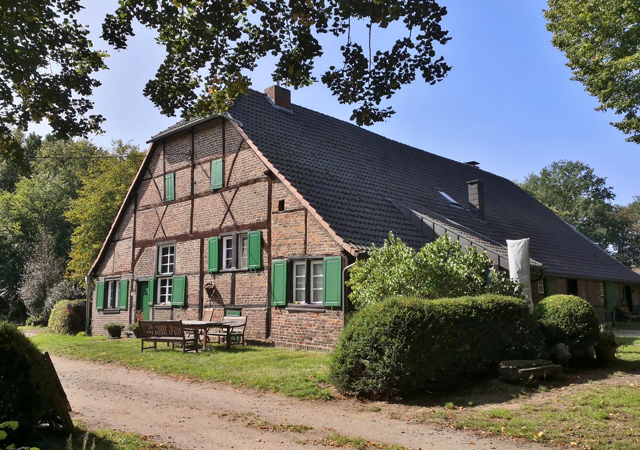 Seit 1961 ist das Gut an den Rheinisch-Westfälischen Schleppjagdverein verpachtet, der hier vor allem im Herbst Jagden mit Pferden und Hunden trainiert und veranstaltet. Überall auf unserer Wanderung begegnen wir auf den Reitwegen Sprunghindernisse, an denen Reiter trainieren können.