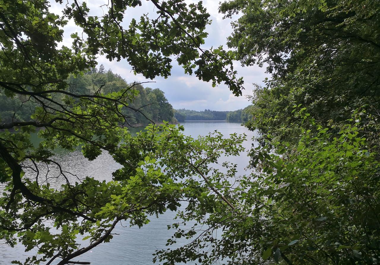 Unsere Wanderung führt an einigen Stellen weg vom Ufer und hinauf auf die Höhen rund um die Talsperre. Eigentlich ist die Tour 16 km lang. Aber weil es heute sehr schwül ist, kürze ich ein wenig ab, so dass wir bereits nach drei Stunden wieder zurück am Startpunkt sind.