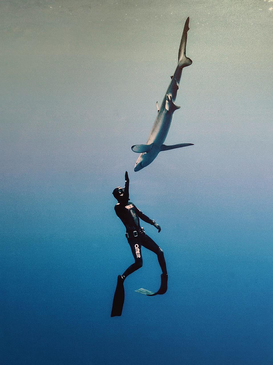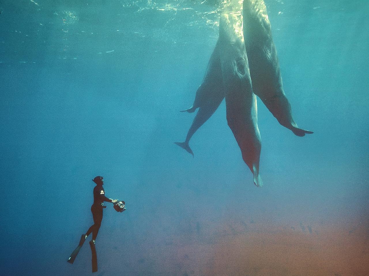 Der Golfstrom prallt auf dieses Gebirgsmassiv und spült nährstoffreiches Wasser in die Höhe. Deshalb gibt es rund um die Azoren zahlreiche Großfische und Meeressäuger, die das Expeditionsteam als Freitaucher fotografisch eingefangen hat.