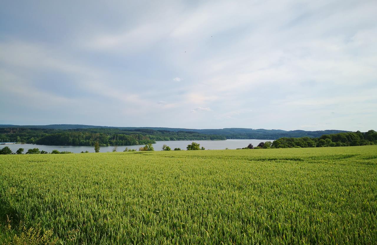 Der Nachmittag ist schwül und sehr windig, doch am Abend beruhigt sich das Wetter. Ich gehe im kühlen See schwimmen und versuche Doxi zu motivieren, mitzukommen. Doch sie will nicht ins Wasser.Am nächsten Morgen fahren wir an den Ostrand des Sees in den Ort Völlinghausen. Dort gibt es einen kostenlosen Womo-Stellplatz in der Nähe des Wildgeheges Völlinghausen. Gleich dahinter beginnt der riesengroße Arnsberger Wald. Am Morgen und am Abend laufe ich mit Doxi jeweils rund drei Stunden durch den Wald.