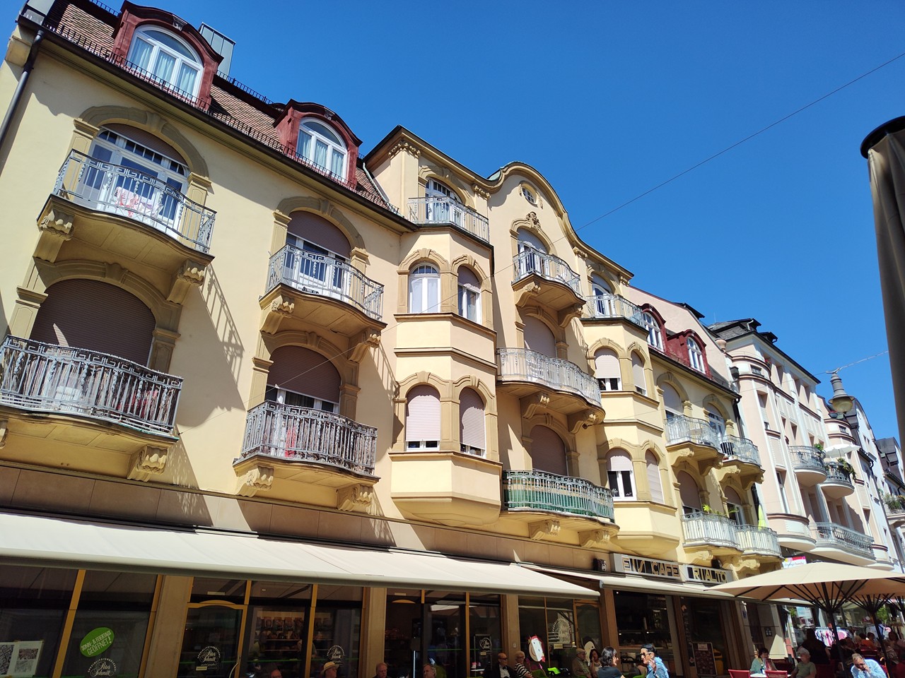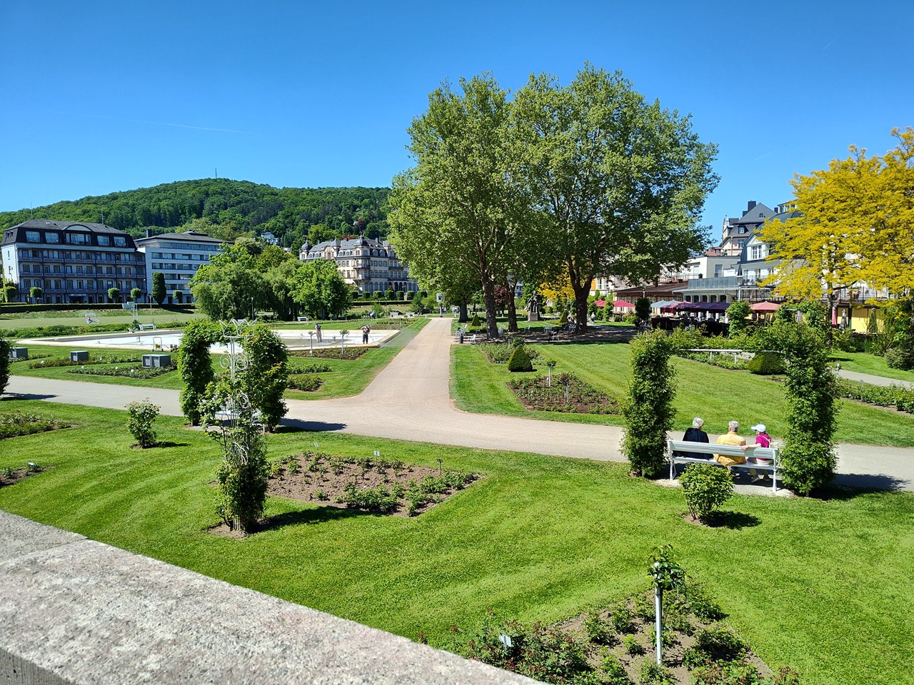 Weil wir mit dem Wohnmobil etwas außerhalb parken mussten, schaue ich mir das Ganze mit dem Fahrrad an und bin erstaunt, wie viel hier tatsächlich los ist. Überall Menschen auf den Straßen und auf den Bänken, die die Sonne genießen. Ich dachte, der Kurtourismus sei längst passé, aber hier sieht es gerade eher nicht so aus.