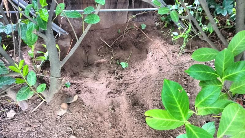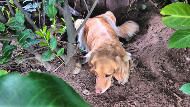 Da sich dieser Vorgang mehrmals täglich wiederholt, muss man hier mittlerweile von Tiefbauarbeiten sprechen. Teilweise kommen Baumwurzeln zum Vorschein, an anderer Stelle altes Mauerwerk. Vielleicht findet Bellis ja noch einen Schatz 😉 Das wäre toll!