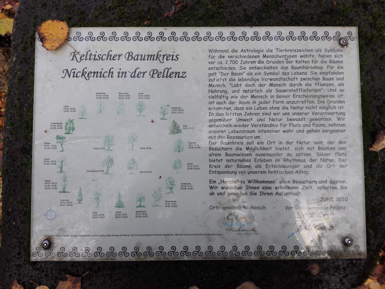 Durch einen Mischwald kommen wir zu einem Keltischen Baumkreis. Wir blicken nun Richtung Rhein ins Siebengebirge und in die Pellenz. Wir beginnen mit dem Abstieg und erreichen nach weiteren vier Kilometern wieder unseren Startpunkt am zum römischen Grabmal.