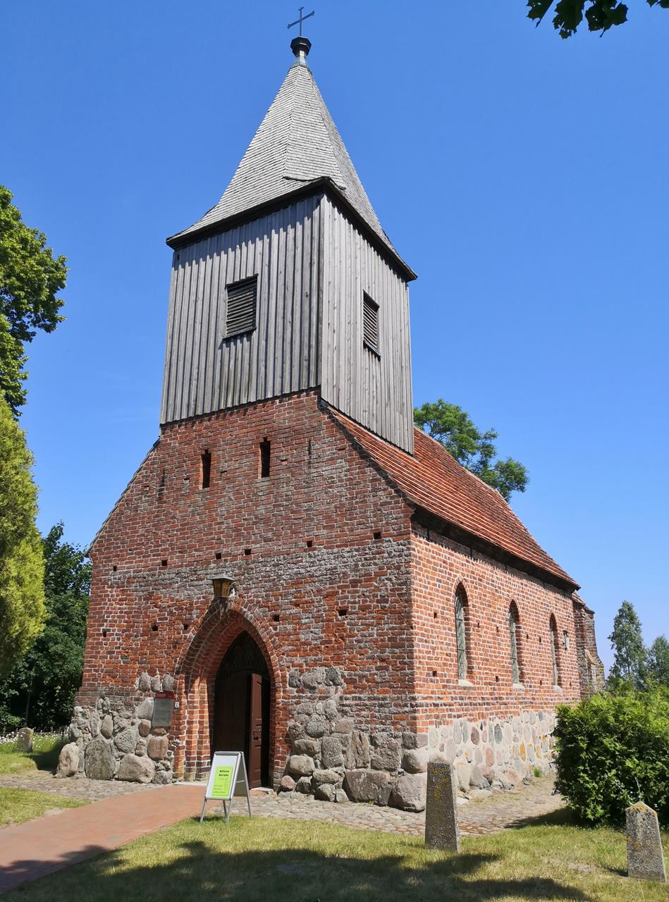 Sehenswert ist darüber hinaus die evangelische Dorfkirche, die etwa um 1350 errichtet wurde und eine der ältesten Glocken von Rügen beherbergt. Die gotische Kirche hat einen fünfseitigen Chor mit einem Kreuzrippengewölbe mit Birnstabprofil, sowie ein flach gedecktes Kirchenschiff. Der Kirchturm ist aus Holz.