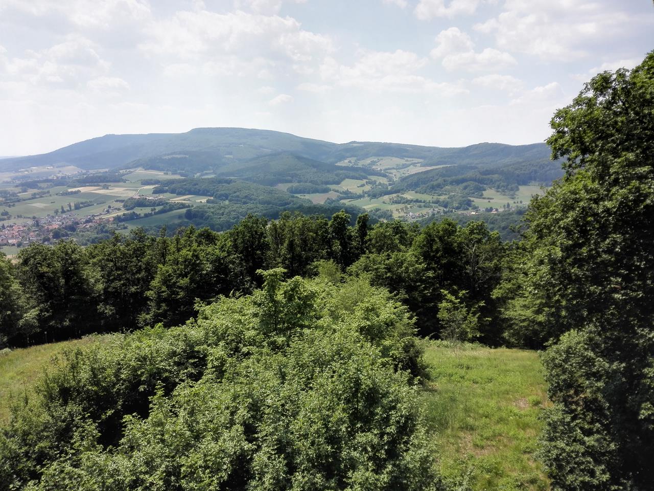 Da es sehr heiß ist und die Wanderstrecke im zweiten Teil den Wald verlässt, kürzen wir nach der Besteigung des Roßkopfes ein wenig ab, um im Schatten des Waldes zu verbleiben. Statt der avisierten 20 Wanderkilometer werden es dann nur knapp 17, aber das reicht ja bei diesem schweißtreibenden Wetter ja eigentlich auch 🙂