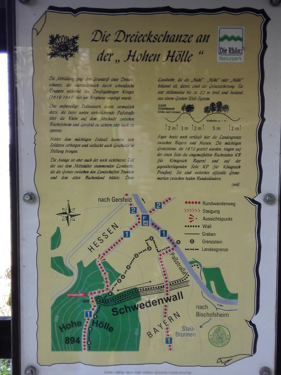 Am Nordhang der Hohen Hölle befindet sich mit dem „Schwedenwall“ eine Dreieckschanze. Sie wurde wahrscheinlich während des Dreißigjährigen Kriegs durch schwedische Truppen angelegt, um den unten vorbeiführenden Abschnitt Bischofsheim–Gersfeld der Passstraße über die Rhön zu sichern oder zu sperren.