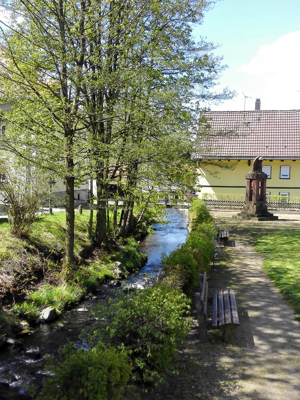 Früh am Morgen sind wir von Poppenhausen wenige Kilometer weiter in die Gemeinde Gersfeld gefahren. Durch die Stadt, 5 Km südlich der Wasserkuppe, fließt die hier noch schmale Fulda.