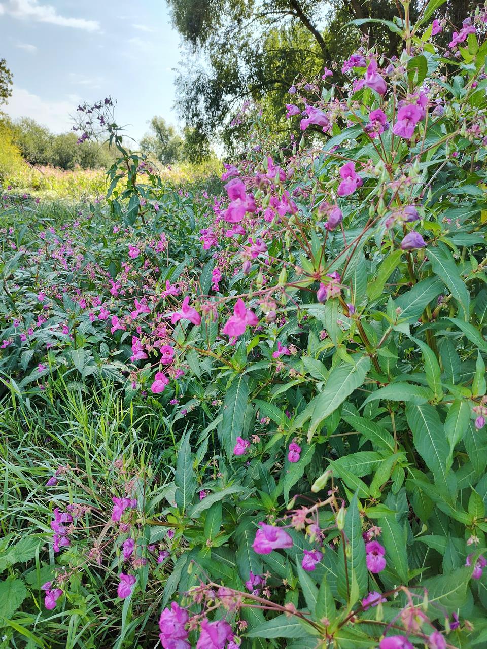 Der schmale Saumpfad zwischen den Feldflächen und der Rur wird selten begangen, wie das hochgewachsene Gras und die vielen Brennnesseln vermuten lassen. Mit meinen halbnackten Beinen muss ich hier gut aufpassen.