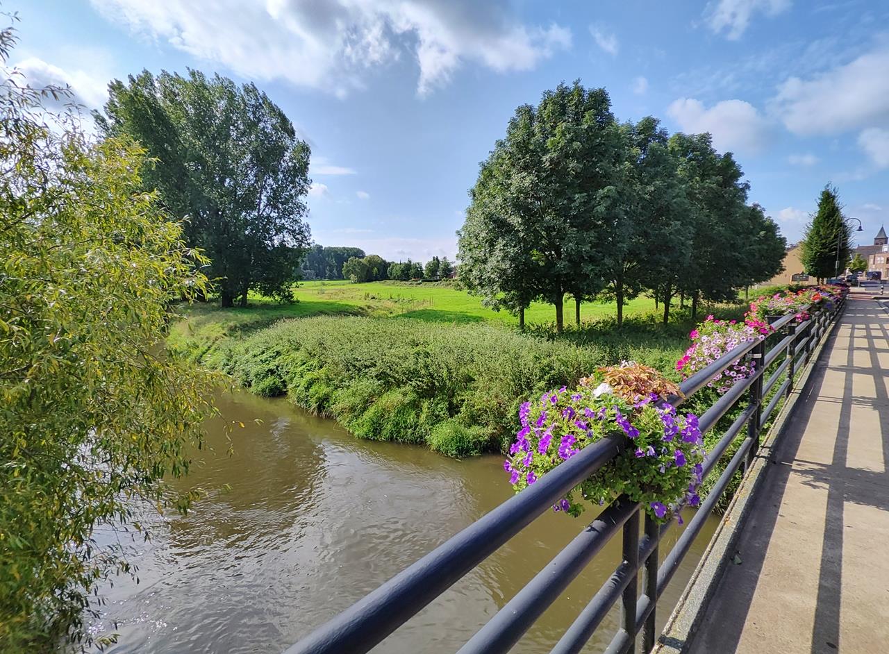 Wir queren am Ortsrand von Vlodrop die Rur, laufen durch den kleinen niederländischen Ort und dahinter durch die Felder zurück in Richtung Deutschland.