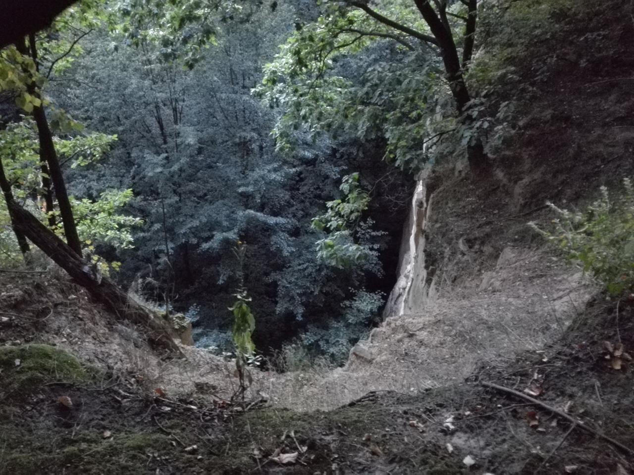 Glücklich erwischen wir schließlich einen Wanderweg, der wiederum durch den Wald über steile Treppen nach unten führt. Ich trage mein Handy am ausgestreckten Arm wie eine Laterne vor mir her, damit wir in der vollkommenen Dunkelheit zumindest ein wenig die Stufen erkennen können.