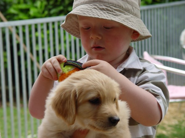 Wenn Kinder zum Welpenbesuch kommen, ist die Begeisterung über die Welpen meistens noch größer als bei den Erwachsenen. „Mutti, warum können wir den nicht mitnehmen?“, heißt es dann.