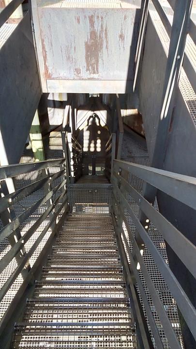 Selbstportrait im Treppenabgang von der Aussichtsplattform hoch über den Hochöfen