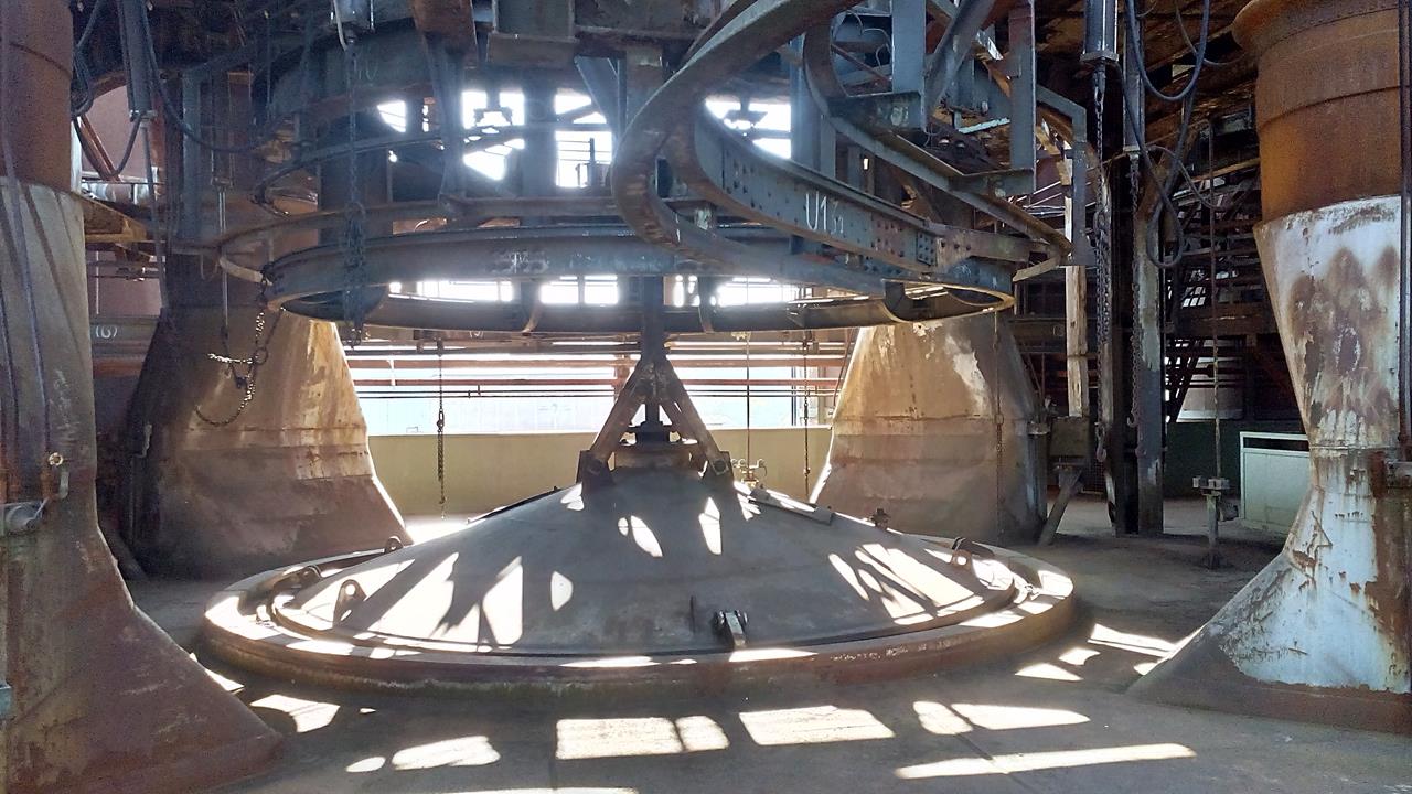 Hochofendeckel auf der Gichtbühne in 27 Metern Höhe