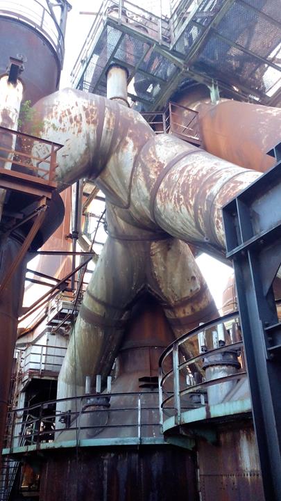 Über rund 7 Kilometer erstreckt sich der Rundweg durch das Gelände: Von der Sinteranlage, über die Erzhalle, die Möllerhalle, die Hochöfen, die Koksöfen, die Schrägaufzüge für den Kohletransport in die Hochöfen, bis zur Gebläsehalle. Alles hier ist gigantisch.