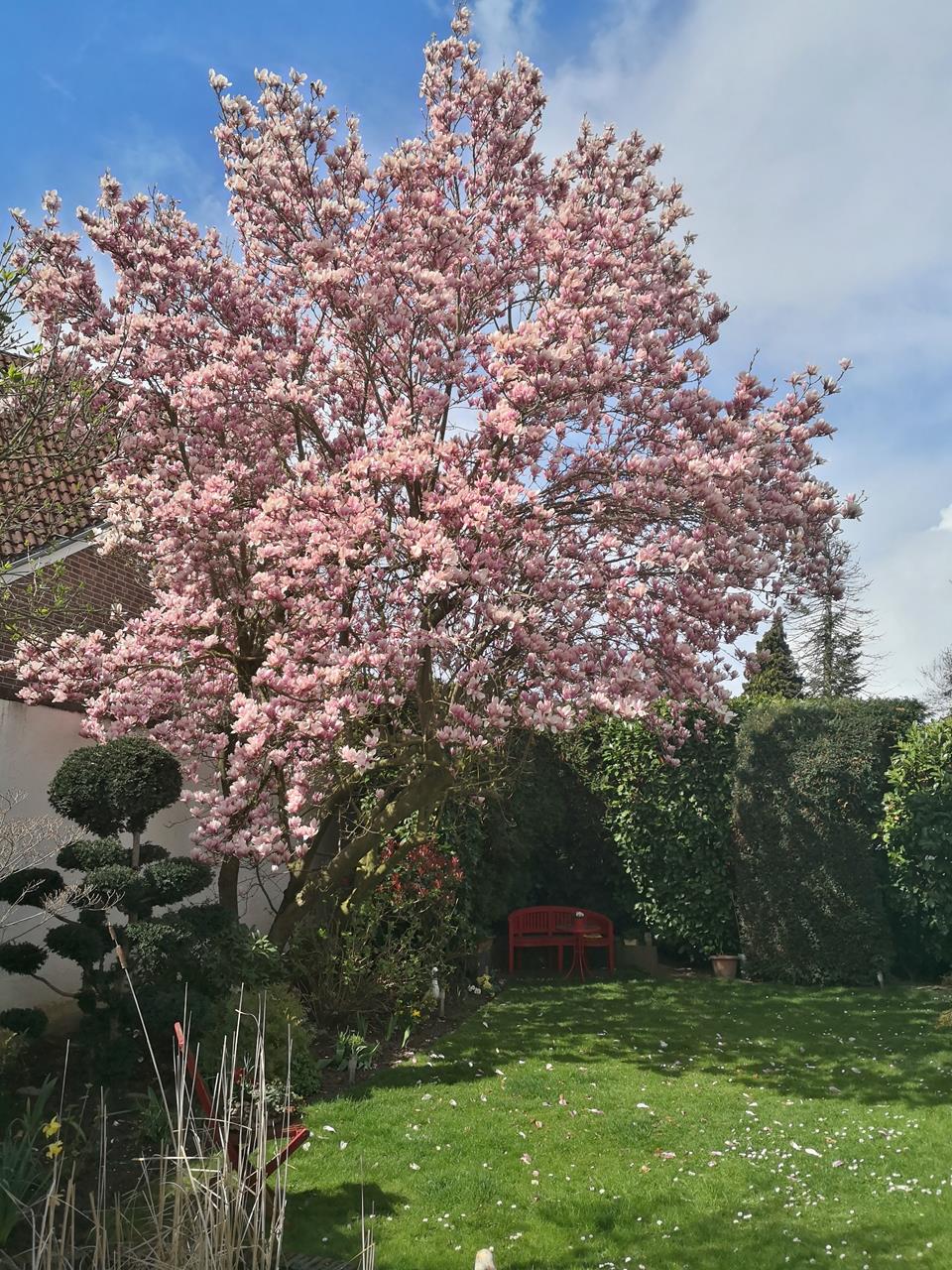 [Update: Zum Monatsende ist unsere große Magnolie endlich doch noch erblüht. Ein hoffnungsvolles Zeichen.]