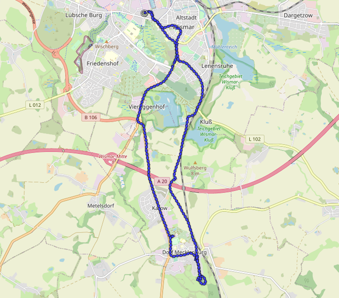 Am Abend unternehme ich eine Radtour von Wismar in das nur wenige Kilometer entfernte Dorf Mecklenburg auf halber Strecke zwischen Wismar und dem Schweriner See.