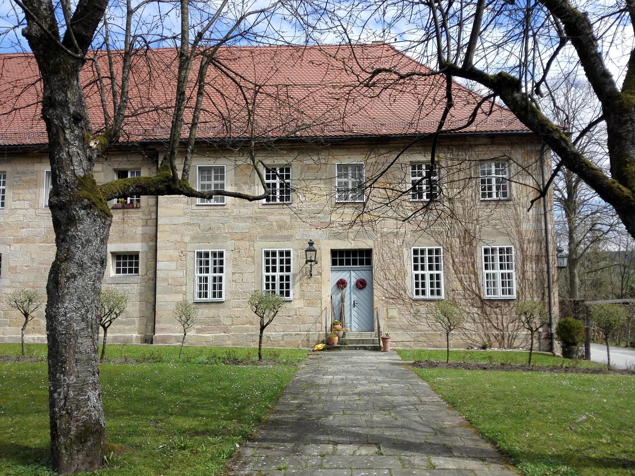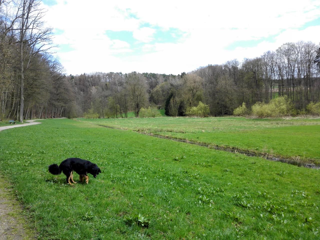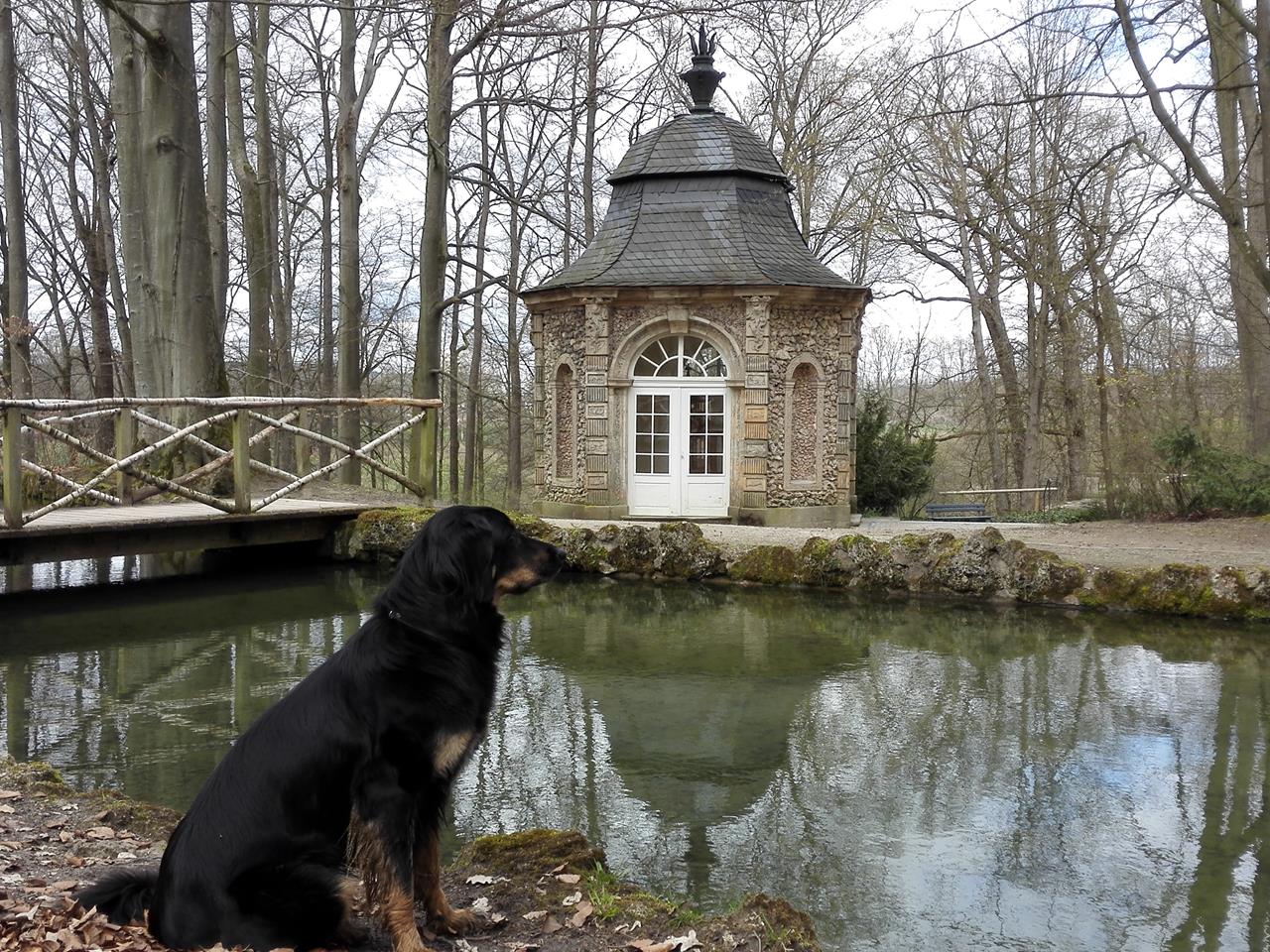 Ich wandere mit Doxi über Wiesen und Felder und durch das Tal des Roten Mains zu dieser wunderbaren Parkanlage mit zahlreichen Wasserspielen und sehenswerten Bauwerken, die ab dem Jahr 1715 entstanden ist.