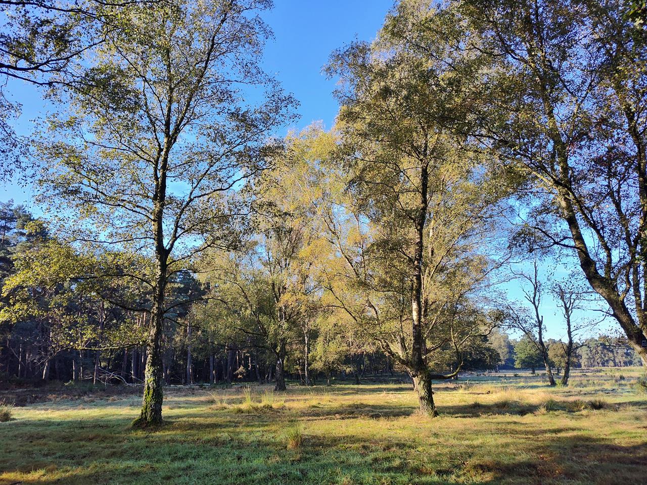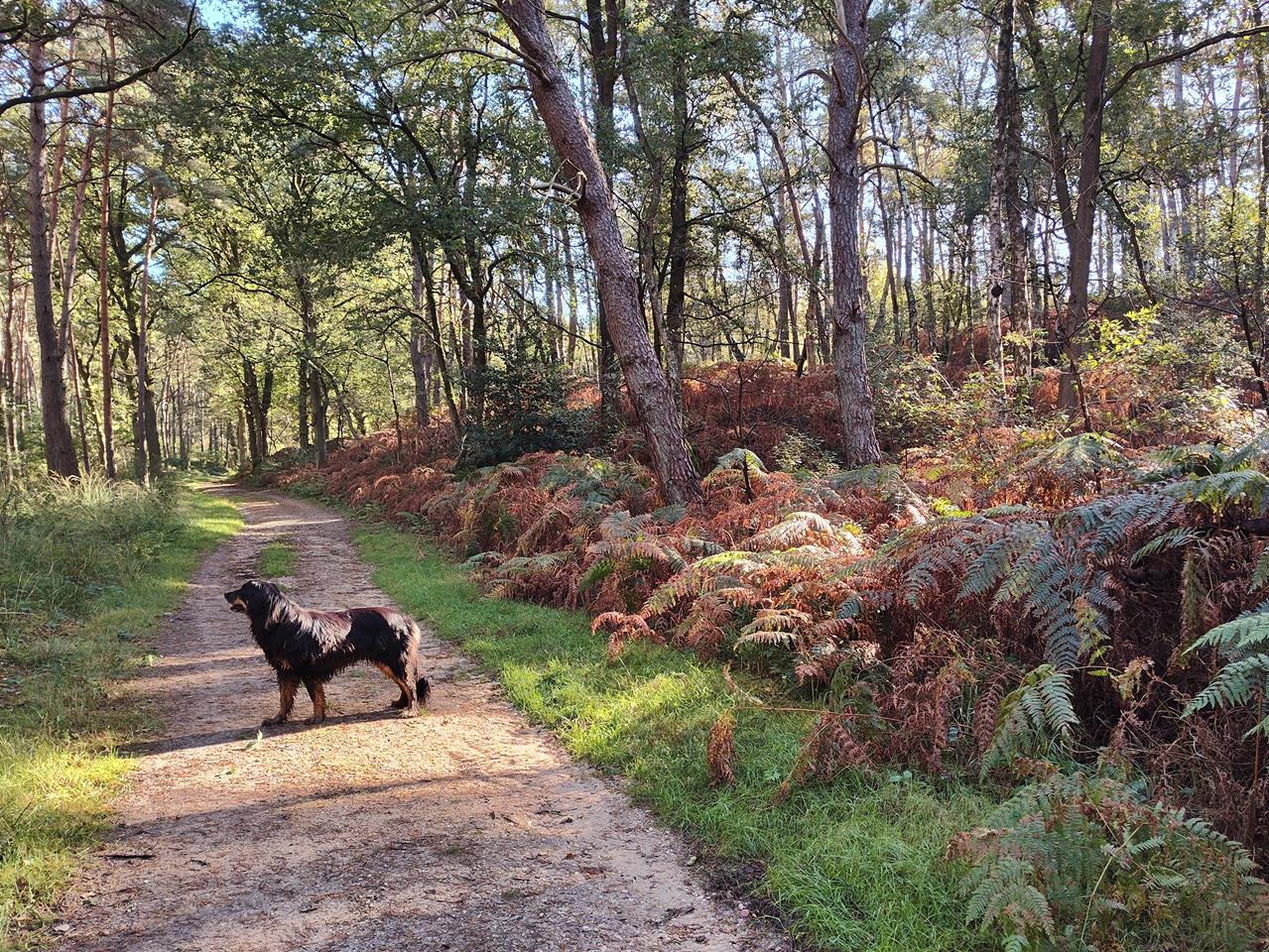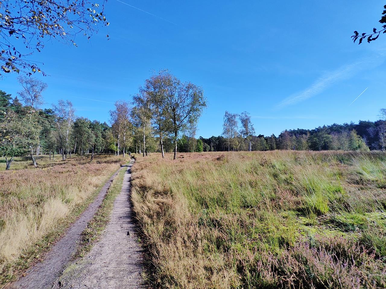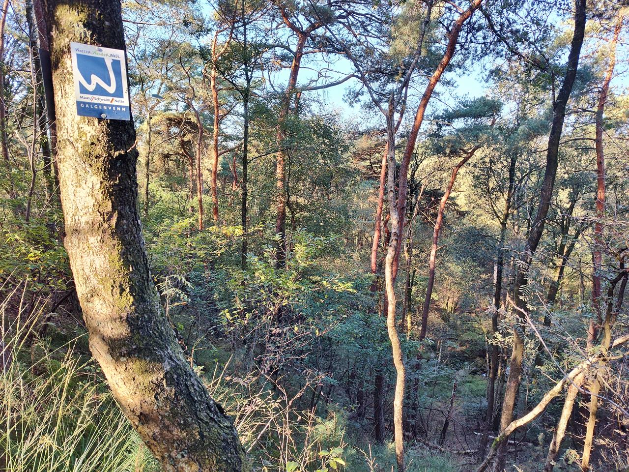 Wir folgen dem beliebten Wald-Wasser-Wanderweg „Galgenvenn“ durch die teils hügelige Waldlandschaft, die sich mit flachen Heideflächen abwechselt.Auch viele Niederländer frequentieren das Gebiet, insbesondere Mountainbike-Fahrer. Um den schlimmsten Heizern auf zwei Rädern etwas aus dem Weg zu gehen, wechseln wir bald vom ausgeschilderten Wanderweg auf weniger frequentierte Nebenstrecken im Wald.