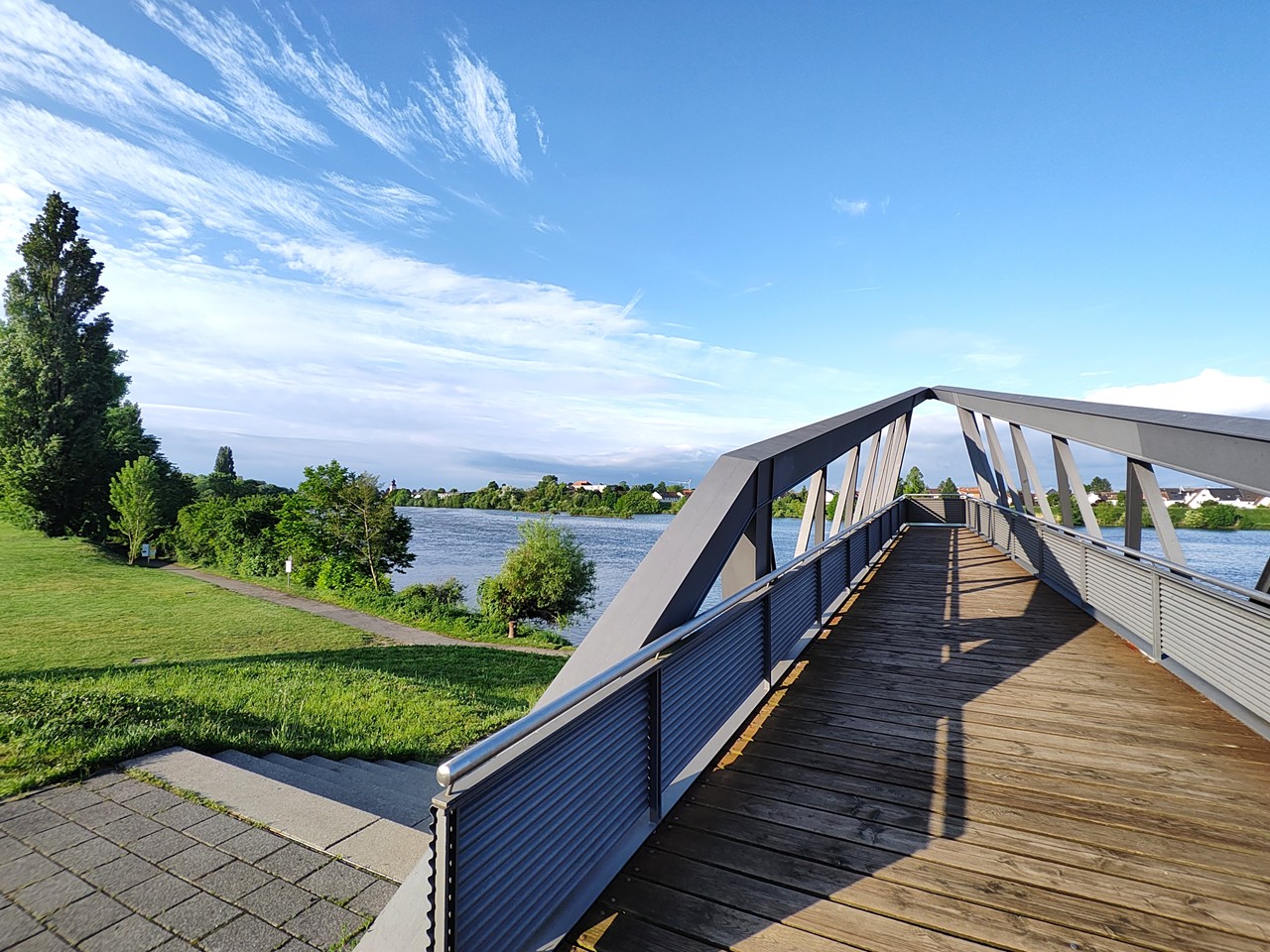 Huch, eben noch war ich in der Pfalz, nun bin ich am Neckar. Das ging aber schnell. Von Battenberg am Nordostzipfel des Pfälzerwaldes habe ich die A6 genommen und zwischen Ludwigshafen und Mannheim den Rhein und damit auch die Landesgrenze zwischen Rheinland-Pfalz und Baden-Württemberg überquert. Und bei Mannheim mündet bekanntlich der Neckar in den Rhein.