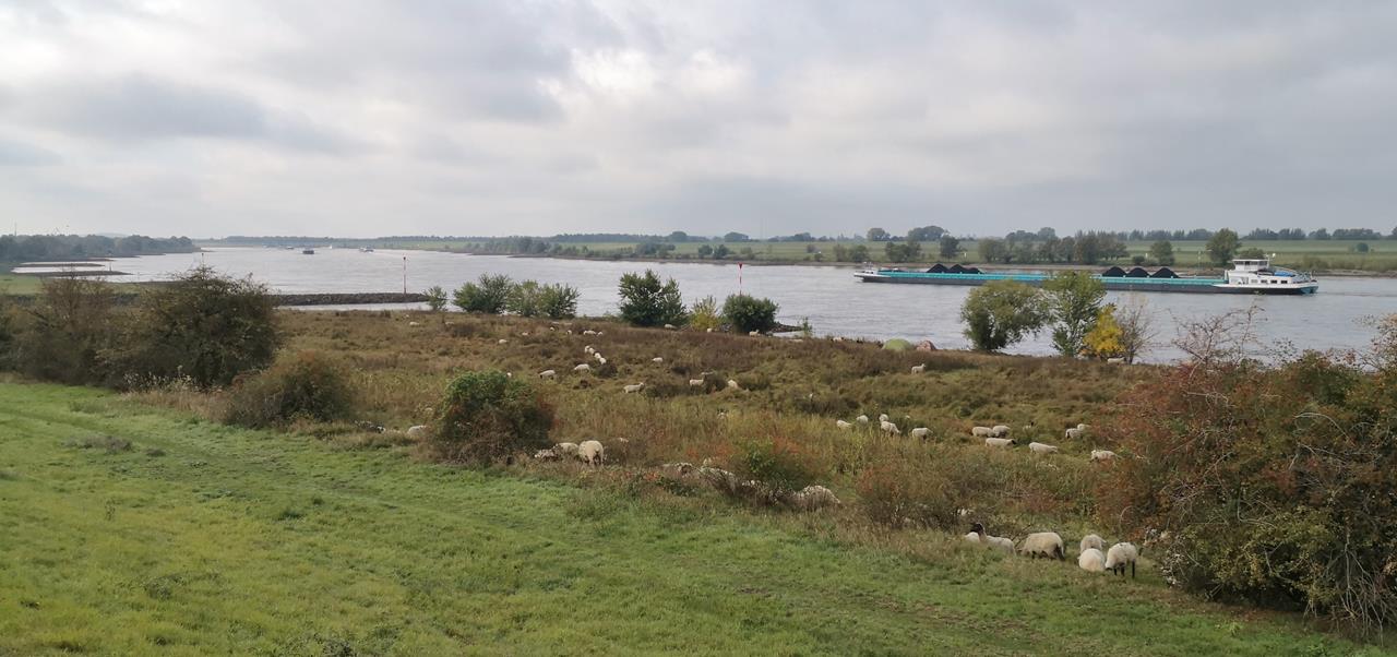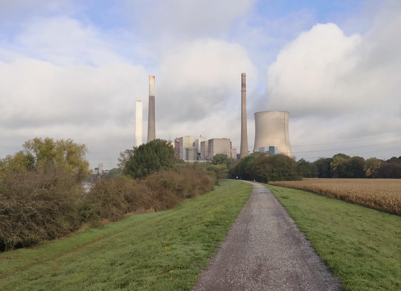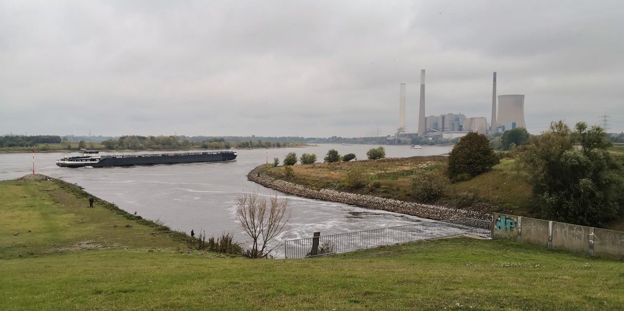 Am westlichen Ortsrand von Dinslaken kommen wir dabei durch den Wohnungswald, einem beliebten Freizeit- und Erholungsgebiet. Am Waldrand stehen wir unmittelbar vor den riesigen Schloten des Steinkohlekraftwerks Voerde, das im März 2017 stillgelegt wurde. Direkt daneben mündet der Rotbach in den Rhein. Dem großen Strom folgen wir nun mehrere Kilometer stromabwärts in Richtung Duisburg.Bald erreichen wir die Emschermündung, an dem sich der einstmals dreckigste Fluss Europas in den Rhein ergießt. In der zweiten Hälfte des 19. Jahrhunderts war der Fluss durch industrielle Abwässer und das Grubenwasser zahlreicher Bergwerke im Ruhrgebiet extrem belastet.
