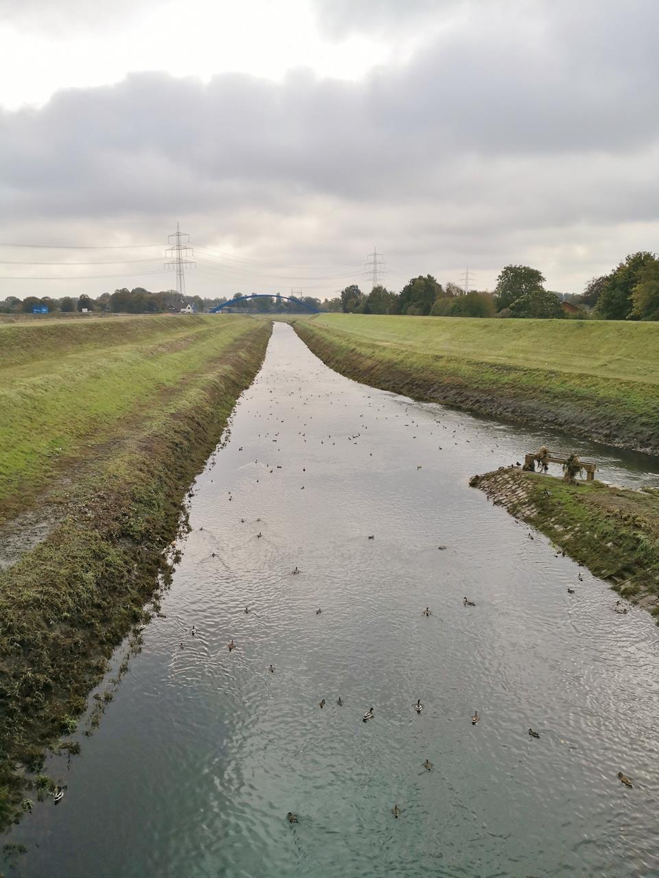 Davon ist heute nichts mehr zu spüren. Auffällig ist jedoch die starke Kanalisierung, die auf die Begradigung und Tieferlegung des Flussbettes durch den Emscherverband ab dem Jahre 1900 zurückgeht. Die Flussmündung wurde in dieser Zeit zweimal verlegt: 1910 von Duisburg-Alsum nach Duisburg-Walsum und 1949 hierher nach Dinslaken.