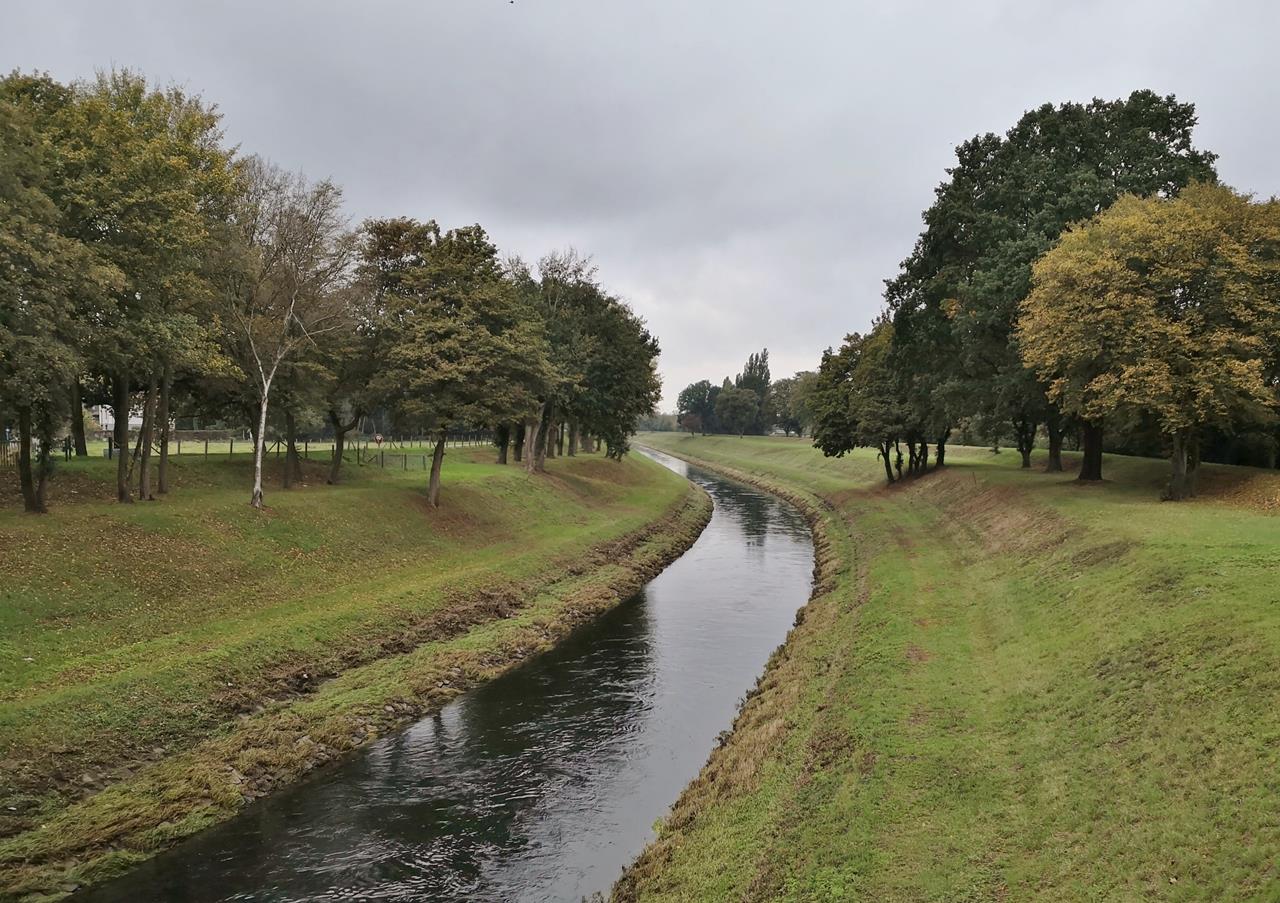 Wir folgen dem Emscherdamm in Richtung des Zentrums von Dinslaken. Am Ortsrand verlassen wir den Fluss und steuern die Altstadt mit der ehemaligen Burg Dinslaken an. Die früher als „Kastell Dinslaken“ bekannte Anlage bildet die Keimzelle der Stadt.